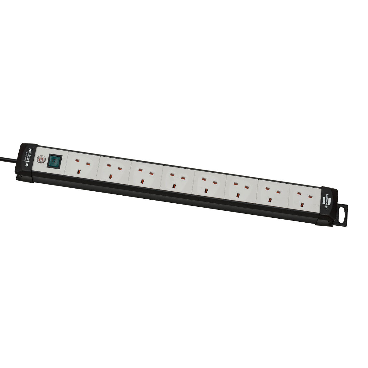 Brennenstuhl 1951583100 Premium-Line 8-Way Extension Lead 3m (Black & Light Grey)