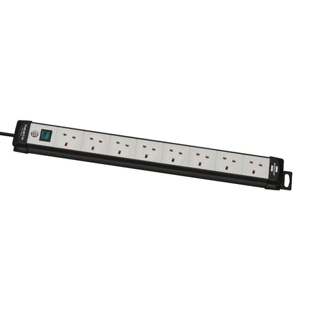 The Premium-Line 8-way Brennenstuhl extension cord in black with a 3m cable impresses with its quality and safety in all areas. Its stylish, stable casing consists of highly break-proof, polished polycarbonate. It's protected against contact and has the following properties too: Light indicating surge voltage is active, illuminated 2-pole switch, suppresses visual and acoustic interference in TV sets, video recorders and audio systems and prevents interference to connected equipment.