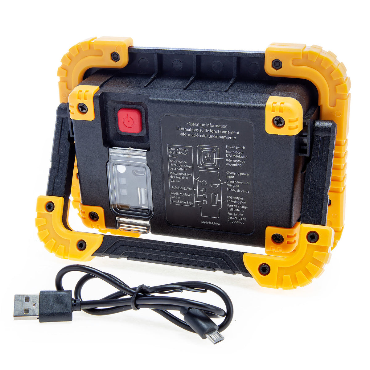 The Toolstop Rechargeable LED COB 10W Work Light delivers up to 750 lumens of light. COB refers to Chip On Board which is Multi LED chips packed closley together as one lighting module. When they light up, it appears like more of a lighting panel than multiple individual lights. COB LED lights are higher-quality light sources because they a reflector to provide focused and controlled light. They don't feature the frosted lenses that come with SMD LED lights