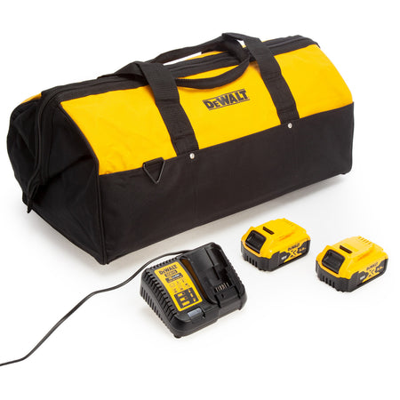 This exclusive Toolstop Deal is made up of 2 x Dewalt DCB184 5.0Ah XR Li-Ion Batteries, a Dewalt DCB115 XR Multi-Voltage Charger 10.8V-18V and a Dewalt MP00390 Large Open Mouthed Tool Bag with internal dimensions of 640 x 350 x 300mm.