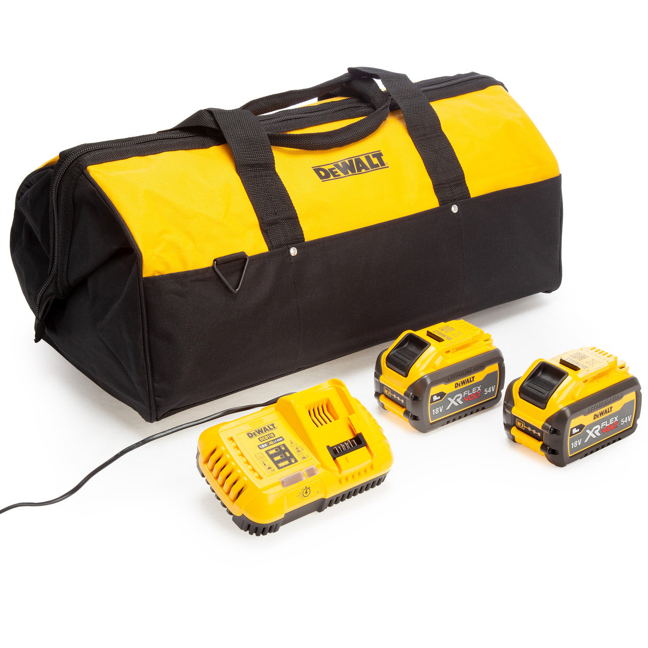 This exclusive Toolstop Deal is made up of 2 x Dewalt DCB547 18V/54V XR Flexvolt 9.0Ah/3.0Ah Batteries, a Dewalt DCB118 XR Flexvolt Fast Charger and a Dewalt MP00390 Large Open Mouthed Tool Bag with internal dimensions of 640 x 350 x 300mm.