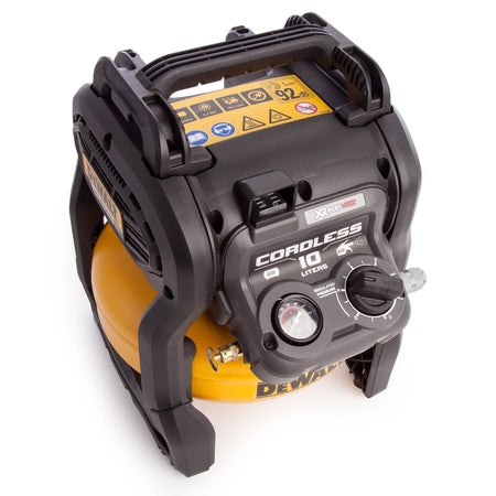 The Dewalt DCC1054N gives us the world’s first Cordless Pneumatic Solution. The Compressor makes pneumatic nailing completely cordless. Part of the 54V XR FLEXVOLT range, this 10 Litre compressor is battery powered and lightweight allowing you to cut the cord and take pneumatic nailing anywhere on the job site. A heavy-duty roll cage gives enhanced durability and the brushless oil-free motor provides reliability and eliminates the frequent wear and tear associated with stroke motors. Featuring a OneTurn regulator, the DCC1054 allows you to adjust the compressor’s regulated pressure quickly and easily. This model is ideally suited to 2nd fix brad nailing applications, air-powered paint gun tasks or even vehicle tyre inflation.