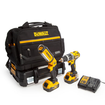 Dewalt's DCD796 brushless combi drill complete with DCL050 work light and TStak compatible tool bag