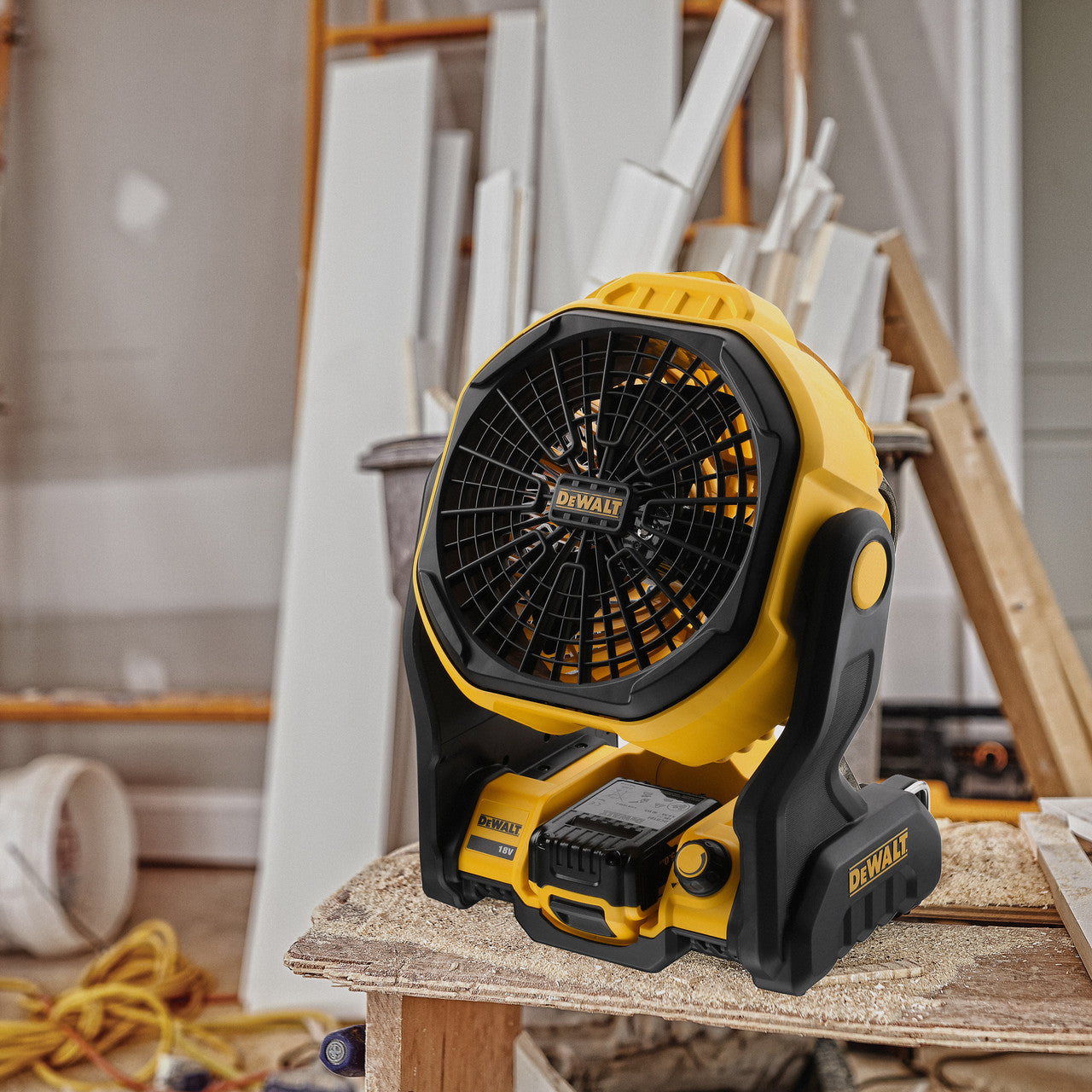 The Dewalt DCE512N 18V XR Fan is compatible with 18V XR and XR FLEXVOLT battery range