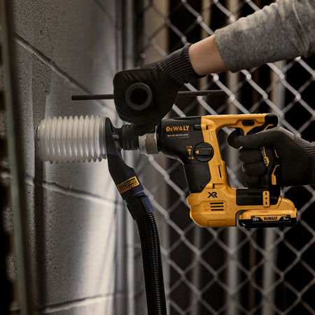 The Dewalt DCH072N (Body Only) is ideal for drilling anchors and fixing holes into concrete, brick and masonry from 4mm to 14mm. With 1.1 Joules of impact energy and 0-4280 blows per minute, this small SDS Plus Hammer will perform like a much bigger machine but can fit in tight spaces and weighs only 1.5kg with a battery. This DCH072N model comes with a Side Handle, Depth Stop and Belt Hook. Sold without a battery or charger in a cardboard box.