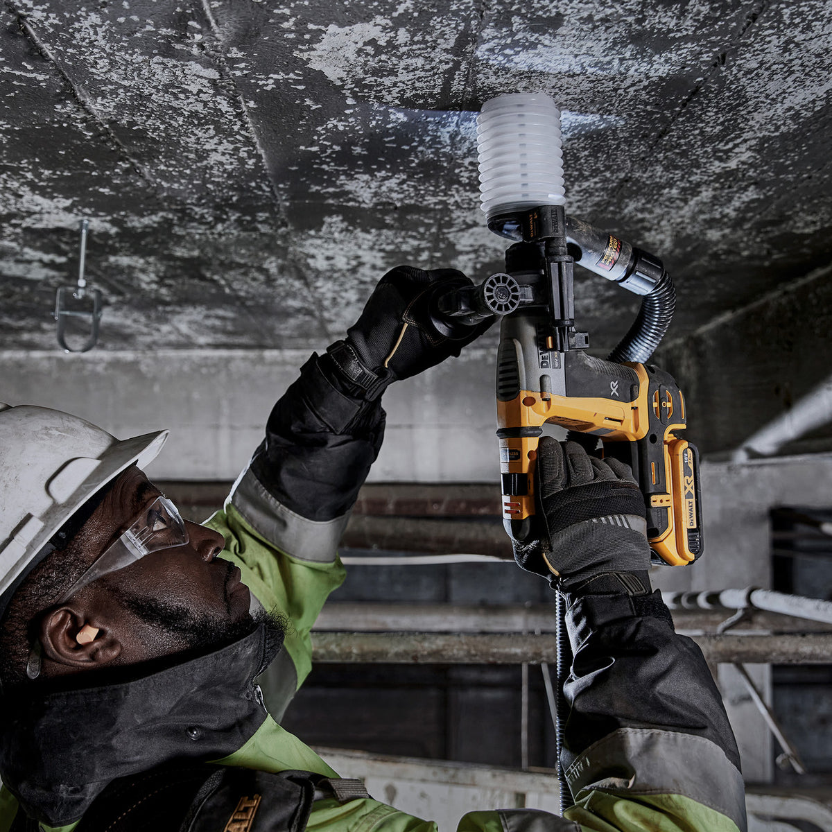 A compact cordless SDS Plus drill with an 18V brushless motor for extreme runtime and reduced maintenance