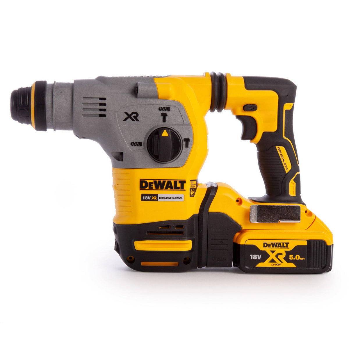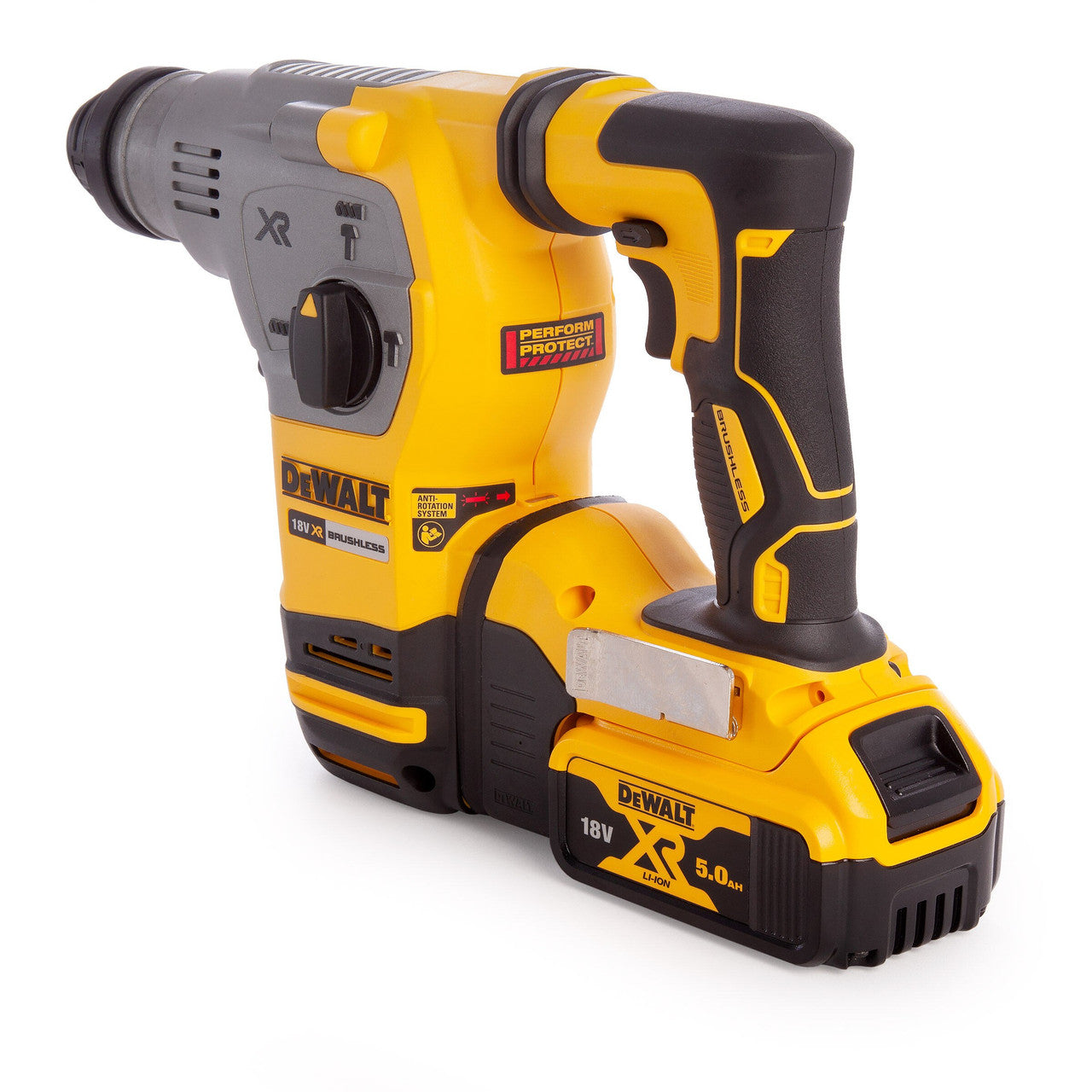 The Dewalt DCH283 is built around an efficient brushless motor matched with a high capacity 5.0Ah battery platform for extreme run-time. This gives the user category-leading high-speed drilling performance boasting more than 74 holes (10mm Ø x 80mm) per charge. It has 3 operation modes including rotation stop mode for light chiselling in plaster, tiles and render and impact stop mode for rotary only drilling in wood and metal. This drill comes with 2 x 5.0Ah Batteries, a Charger and a TStak kit box.