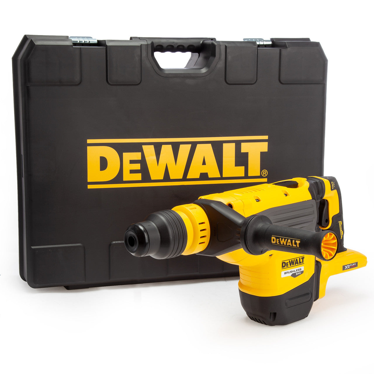Drill up to 48mm in concrete and 125mm with a core bit with this powerful Dewalt 54V SDS