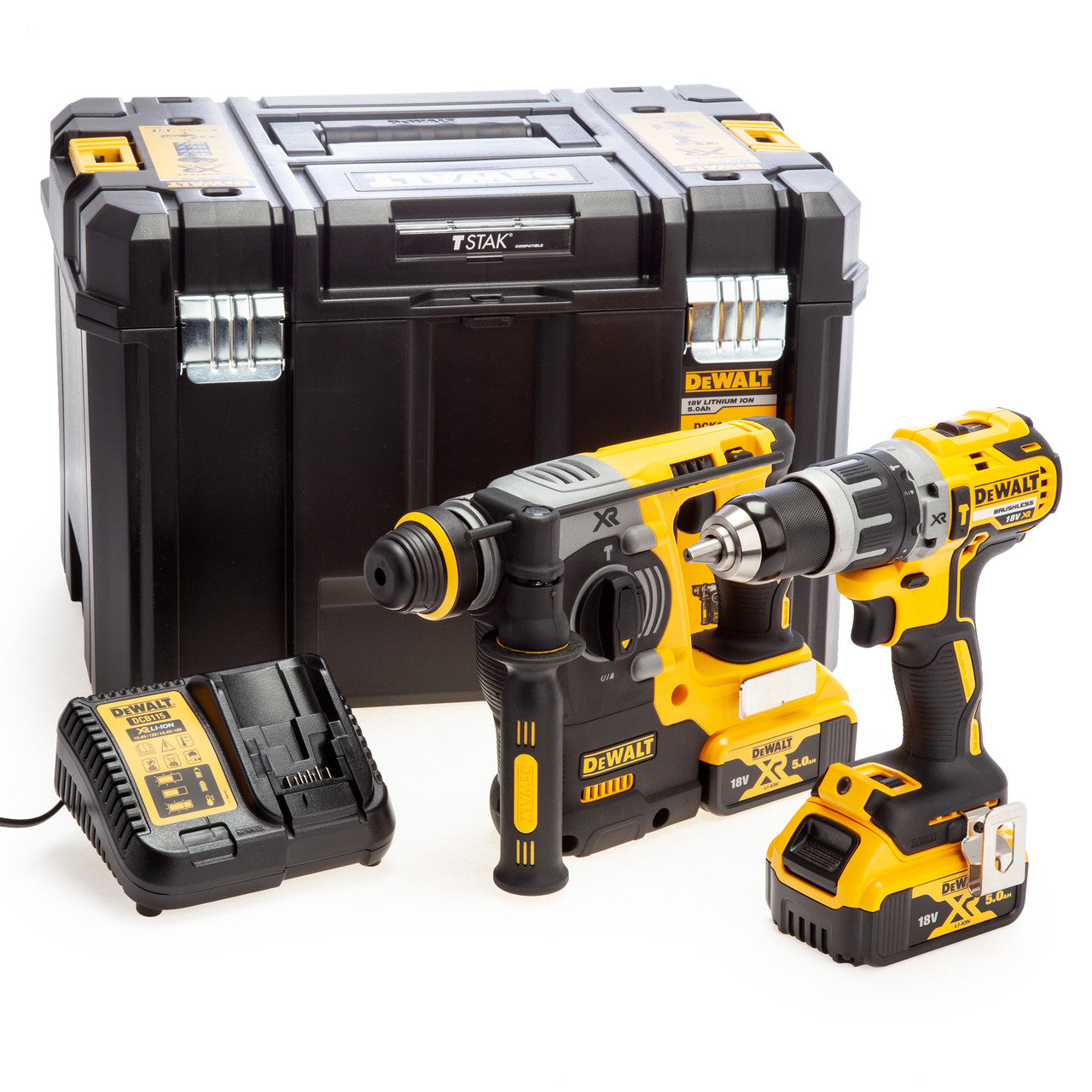 Dewalt DCK207P2T 18V XR SDS Plus Hammer & Combi Drill Twin Pack (2 x 5.0Ah Batteries) in TSTAK Box