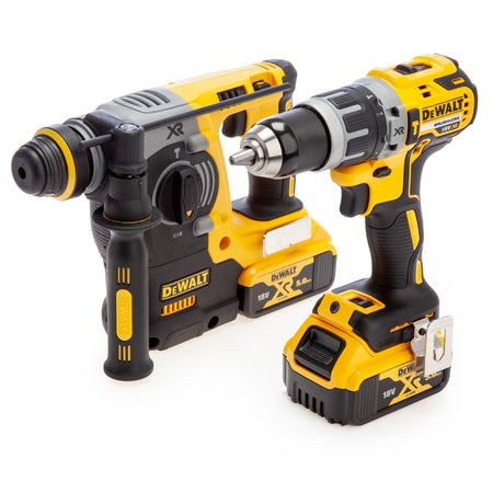 The Dewalt DCK207P2T 18V XR SDS Plus Rotary Hammer & Combi Drill Twin Pack with Brushless motors for extreme runtime and reduced maintenance