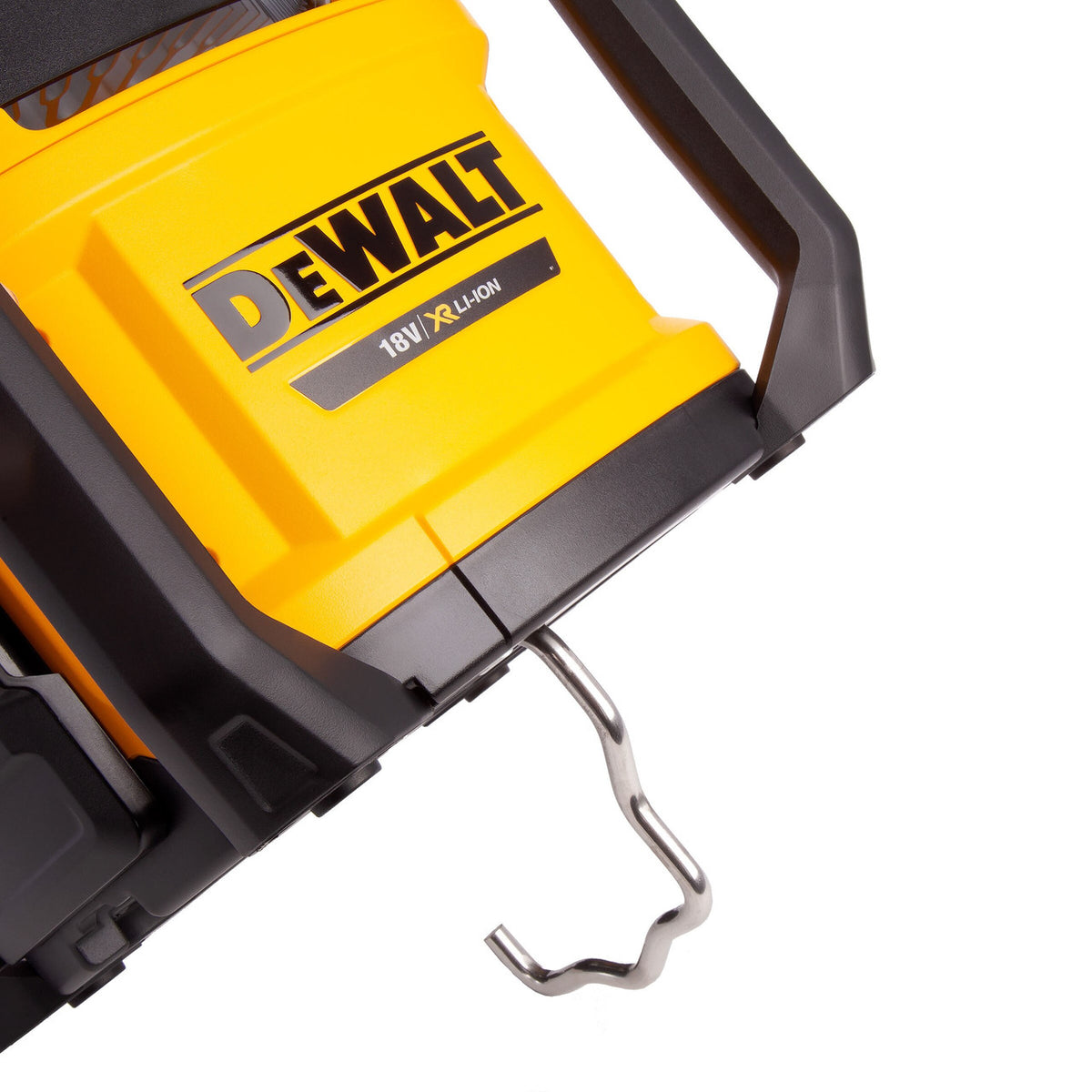 Illuminate your workspace with precision using the Dewalt DCL074 18V XR Tool Connect Area Light. Engineered with a 360° beam pattern and a remarkable 1500 to 5000 lumens brightness range, this cordless LED light provides a bright and even illumination across your entire working area. The lens, finely crafted with 150 flutes, ensures a consistent and efficient beam pattern. Choose from three brightness settings (1500Lm, 3200Lm, 5000Lm) to match your lighting needs. Whether you need a soft glow or intense brightness, this light has you covered. Easily mount the light on a tripod or hang it using the built-in hook for versatile positioning. No matter where you're working, you can have the light at just the right angle and height. The DCL074 comes with built-in Tool Connect features, allowing you to tailor your lighting experience. With the Tool Connect App, remotely control the light's intensity, set schedules, power on/off, and receive low-charge alerts, providing an unmatched level of customisation and control. Built to withstand the rigours of tough job sites, the DCL074 features a robust roll cage that provides superior durability, ensuring it can handle the harshest working conditions.