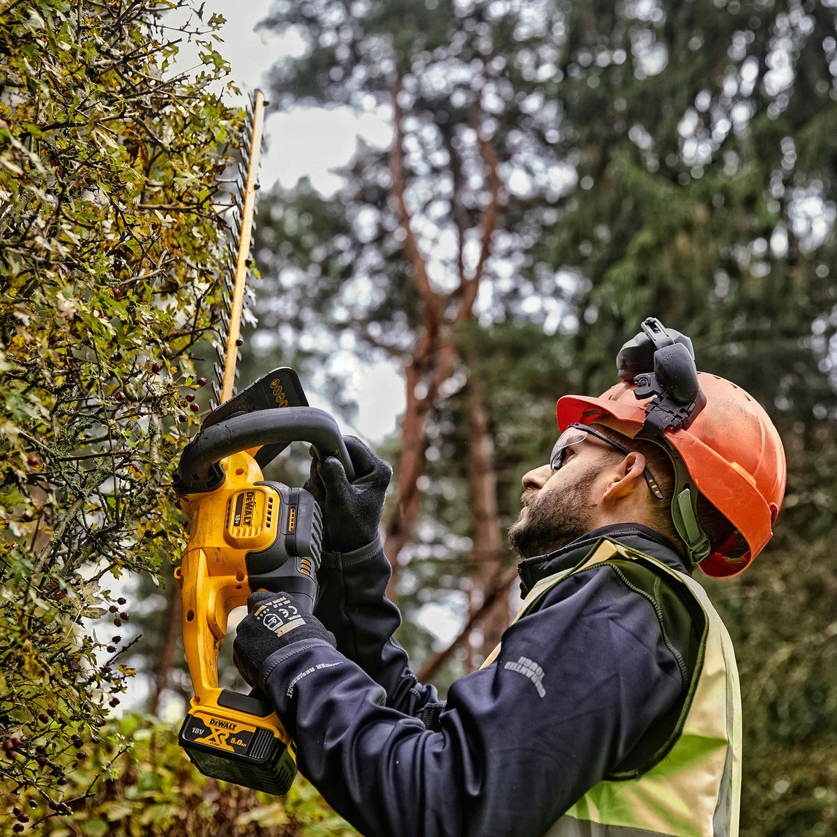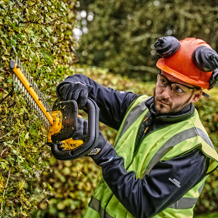 The Dewalt DCMHT563 hedge trimmer is perfect for gardeners and landscapers as well as DIY enthusiasts. The powerful motor provides an extended runtime of up to 75 minutes of trimming per charge when used with a 5.0Ah battery. The 55cm dual action, laser-cut blades with 25mm cutting gap and hardened steel for longer life and lasting sharpness. These blades guarantee great performance and less jams. This product is sold as a body only without a battery and charger.