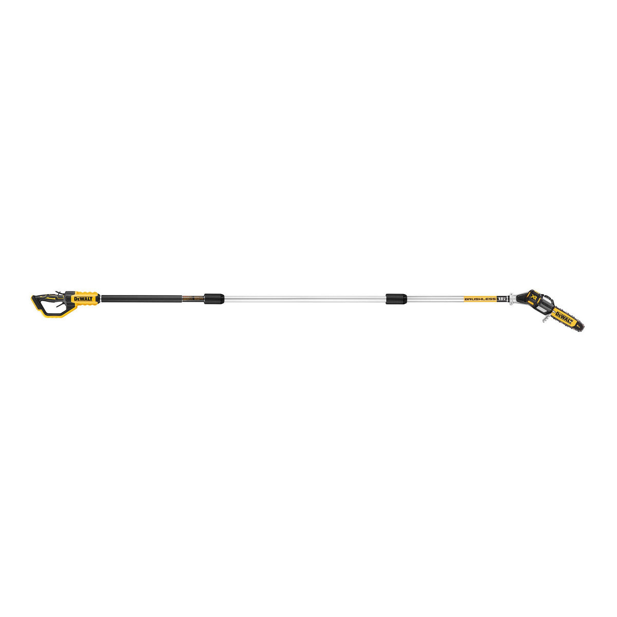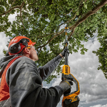 The Dewalt DCMPS567P1 pole saw is ideal for branch pruning and property maintenance. Its extendable pole with a total reach of 4.5m makes it quick and easy to trim high up twigs and branches and its high efficiency brushed motor provides up to 55 100x100mm cuts per 5Ah battery. The dual switch reduces the risk of accidental start-up for increased user safety and auto oiling chain and bar ensures smooth cutting performance.