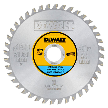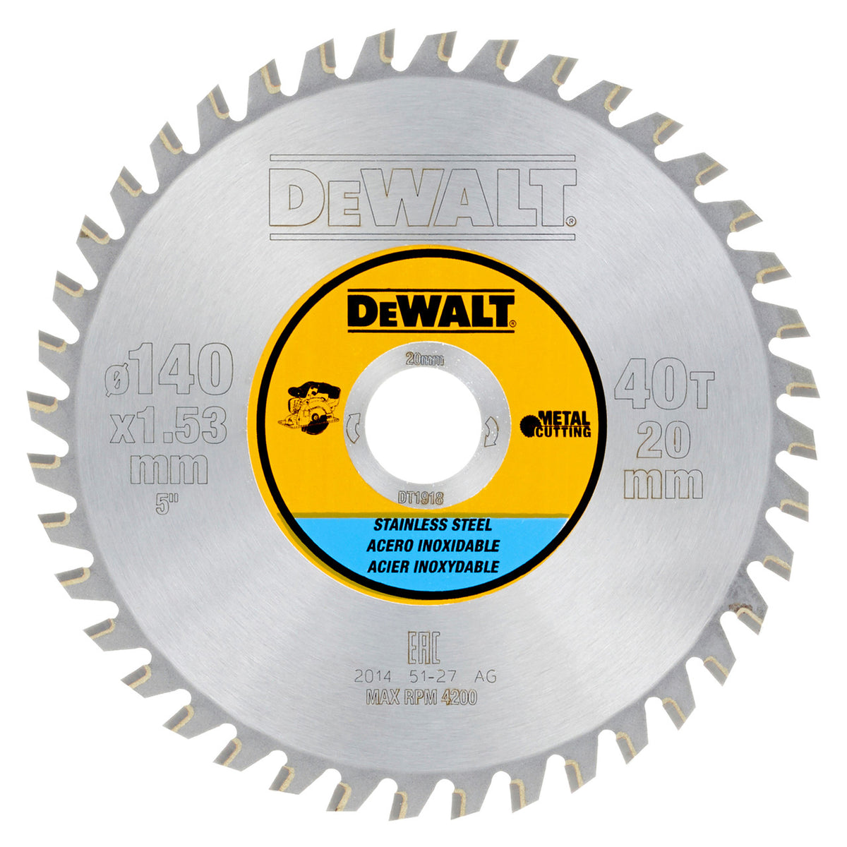 Dewalt DT1918 Stainless Steel Cutting Circular Saw Blade 140 x 20mm x 40T