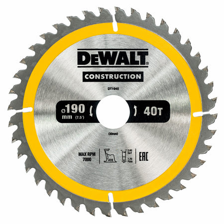 Dewalt DT1945 Construction Circular Saw Blade 190 x 30mm x 40T