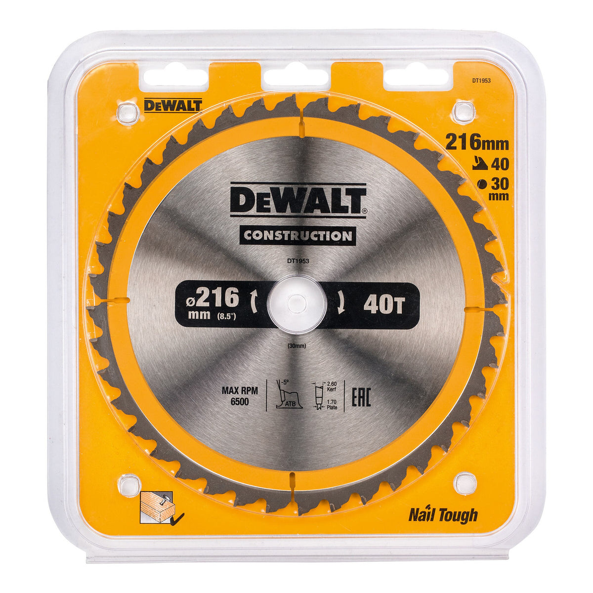 Dewalt DT1953 Construction Circular Saw Blade 216 x 30mm x 40T