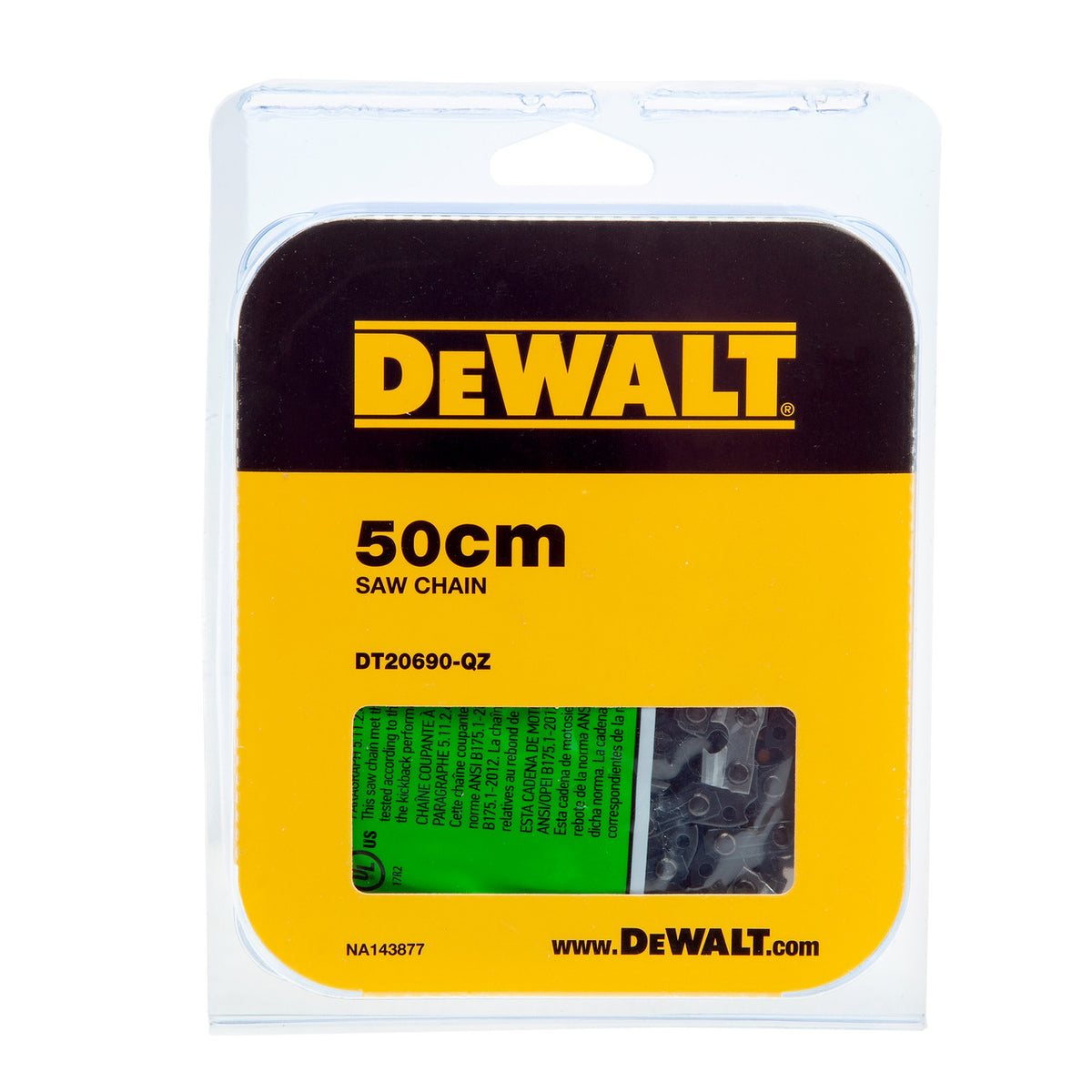 Keep your chainsaw performing at its peak with the Dewalt DT20690 chainsaw chain. Designed specifically for use with the DCMCS575 54V XR FlexVolt Chainsaw, this 50cm chain ensures you can tackle cutting tasks with precision and efficiency. Crafted with high-quality materials and featuring a durable Oregon type, this chainsaw chain offers exceptional performance. The 3/8" chain pitch is ideal for smooth and reliable cutting, making your chainsaw a reliable tool for a variety of applications. When it's time for a replacement chainsaw chain, the Dewalt DT20690 fits the bill perfectly. Experience a straightforward and hassle-free replacement process, getting your chainsaw back in action swiftly.