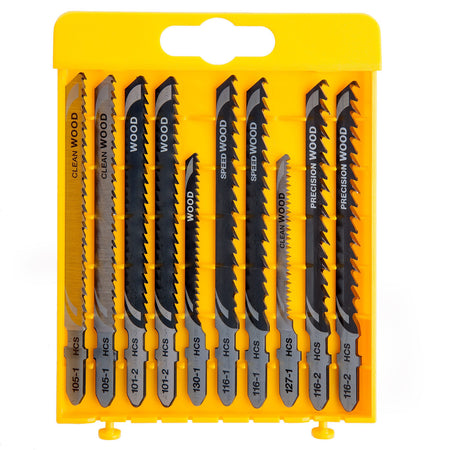 The Dewalt DT2290 Set have a mixture of coarse, fine blades for cutting through various materials including wood, wood laminates and plastics. Also includes 2 extra thick jigsaw blades designed specifically for fast straight cuts through wood up to 60mm thick.