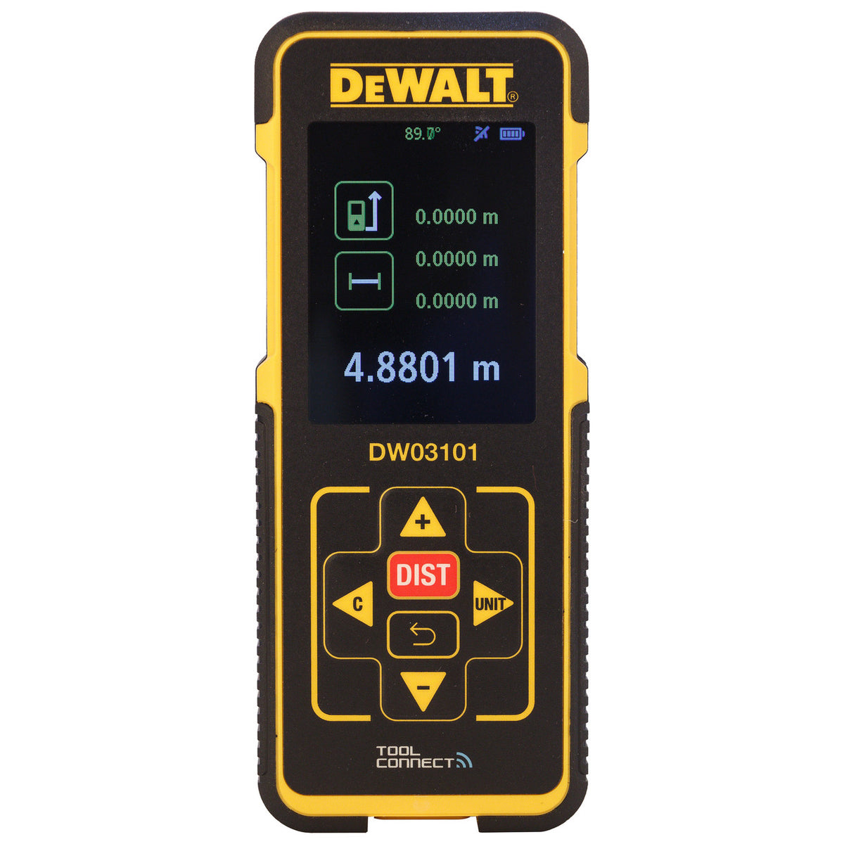 Dewalt DW03101 Laser Distance Measure with Bluetooth and large colour display for good visibility in all working conditions