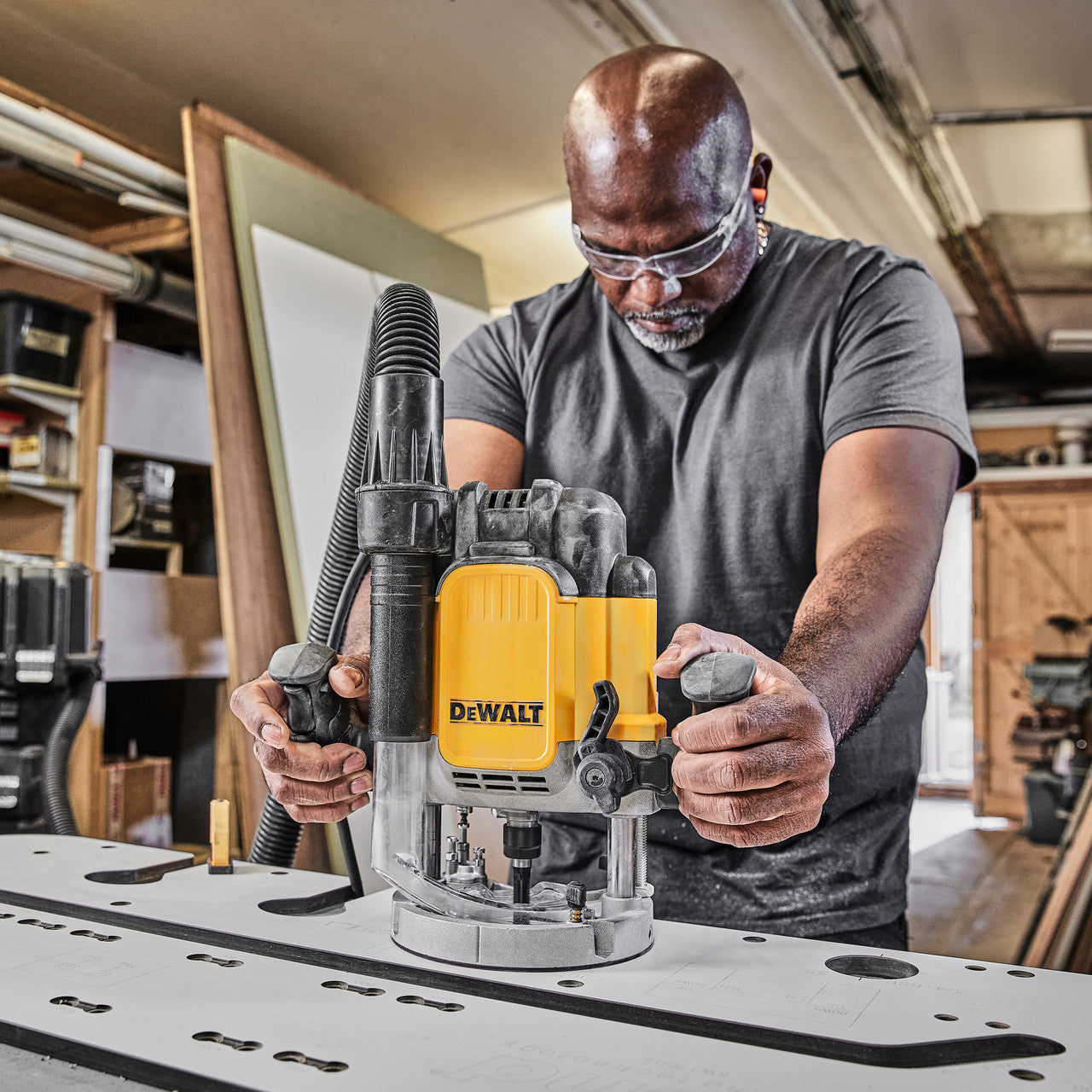 The Dewalt DWE625KT Next-Gen 12mm (1/2") Plunge Router has 3 stage depth stop adjustment