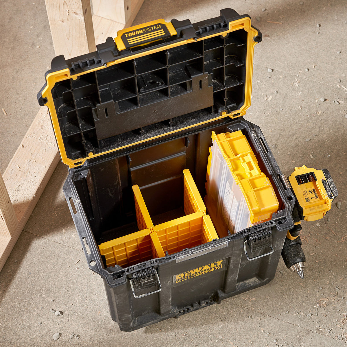 The Dewalt DWST08035-1 TOUGHSYSTEM 2.0 Deep Compact Toolbox expands your storage solutions with a large volume of 20 L./5.3 gals and external dimensions of 390 x 351.5 x 255mm. Help protect your tools and get convenient access to necessities with an IP65 rating and durable design. Featuring an abundant storage capacity, an organiser with lid and 4 removable dividers, this TOUGHSYSTEM solution keeps you organized on rough jobsites.