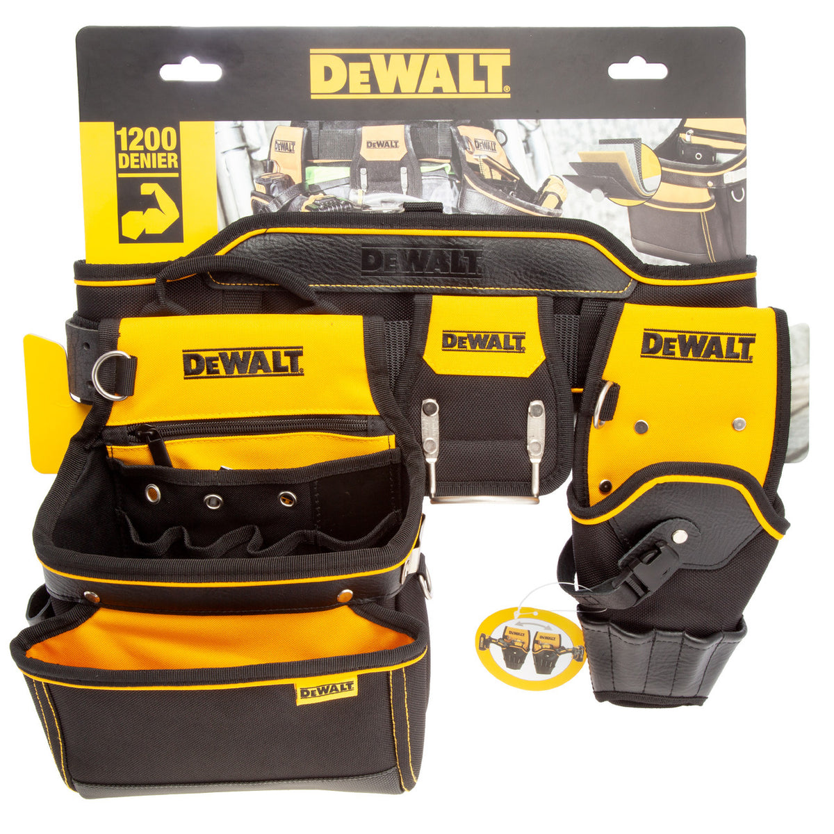 The Dewalt DWST1-75552 is the perfect tool rig system combining a multi-purpose pouch with a drill holster and hammer loop. Built with rugged 1,200 denier fabric and reinforced by leather the belt is robust and hard-wearing. A sturdy 2-pin belt buckle ensures the belt can be tightly secured and can handle carrying heavy loads.
