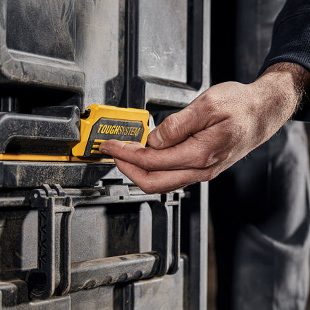 The Dewalt DWST83295-1 TOUGHSYSTEM 2.0 DS450 Stackable Mobile Storage Box runs on chunky 8 Inch wheels, making it easy to transport a large load of tools over an uneven working environment. The detachable handle makes it smaller for storage in the work van and the IP54 rated seals make it dust and watertight to protect whatever you put inside. Dewalt Tracker Ready with a fixing point built in to allow a Tracker to be installed and the box tracked via DEWALT Tool Connect. The TOUGHSYSTEM Stacking system means you can customise the set up to your individual needs. Compatible with all TOUGHSYSTEM Products.