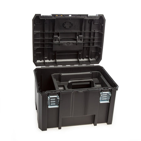 The Dewalt DWST83346-1 is part of the new upgraded TSTAK 2.0 range. The upgraded range has an IP54 rating providing water and dust protection to the tools and fixings inside the box. The metal latches have been made more robust and more capable of coping with the jobsite. The new TSTAK 2.0 boxes also come ready to fit a tracker which can be traced using Dewalt Tool Connect.