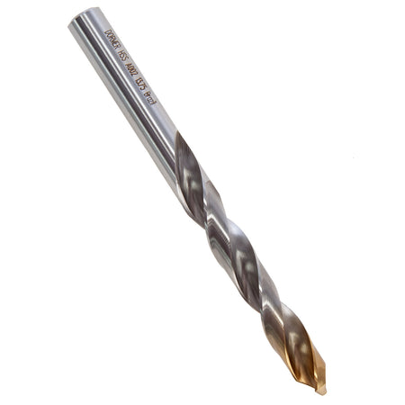The Dormer A00213.75 is a single Jobber length drill with a straight shank. It has a diameter of 13.75mm with an overall length of 160mm and flute length of 108mm according to DIN 338 standard with 118° conical point, HSS with TiN-tip coating for 4xD drilling without pecking in steel. Can be used for drilling many materials including steel, aluminium and stainless steel.