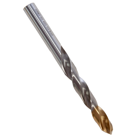 The Dormer A00213.8 is a single Jobber length drill with a straight shank. It has a diameter of 13.8mm with an overall length of 160mm and flute length of 108mm according to DIN 338 standard with 118° conical point, HSS with TiN-tip coating for 4xD drilling without pecking in steel. Can be used for drilling many materials including steel, aluminium and stainless steel.