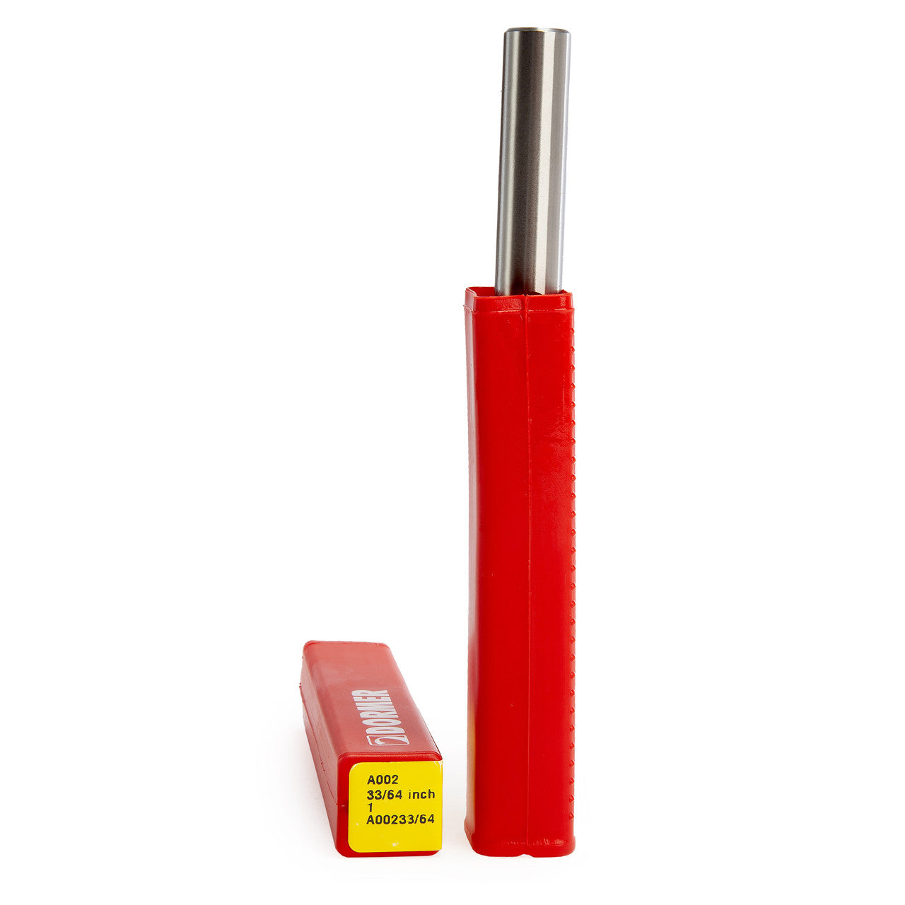 The Dormer A00233/64 is a single Jobber length drill with a straight shank. It has a diameter of 33/64in with an overall length of 151mm and flute length of 101mm according to DIN 338 standard with 118° conical point, HSS with TiN-tip coating for 4xD drilling without pecking in steel. Can be used for drilling many materials including steel, aluminium and stainless steel.