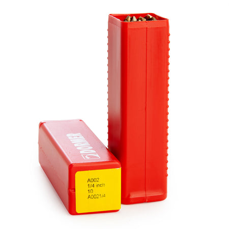 With their 1/4 inch diameter, the Dormer A00214-10 A002 General Purpose Jobber Drill bits are great for drilling in plastic, steel and more. This pack of 10 is long-lasting and durable thanks to the high-speed steel construction and tin-coated tips.