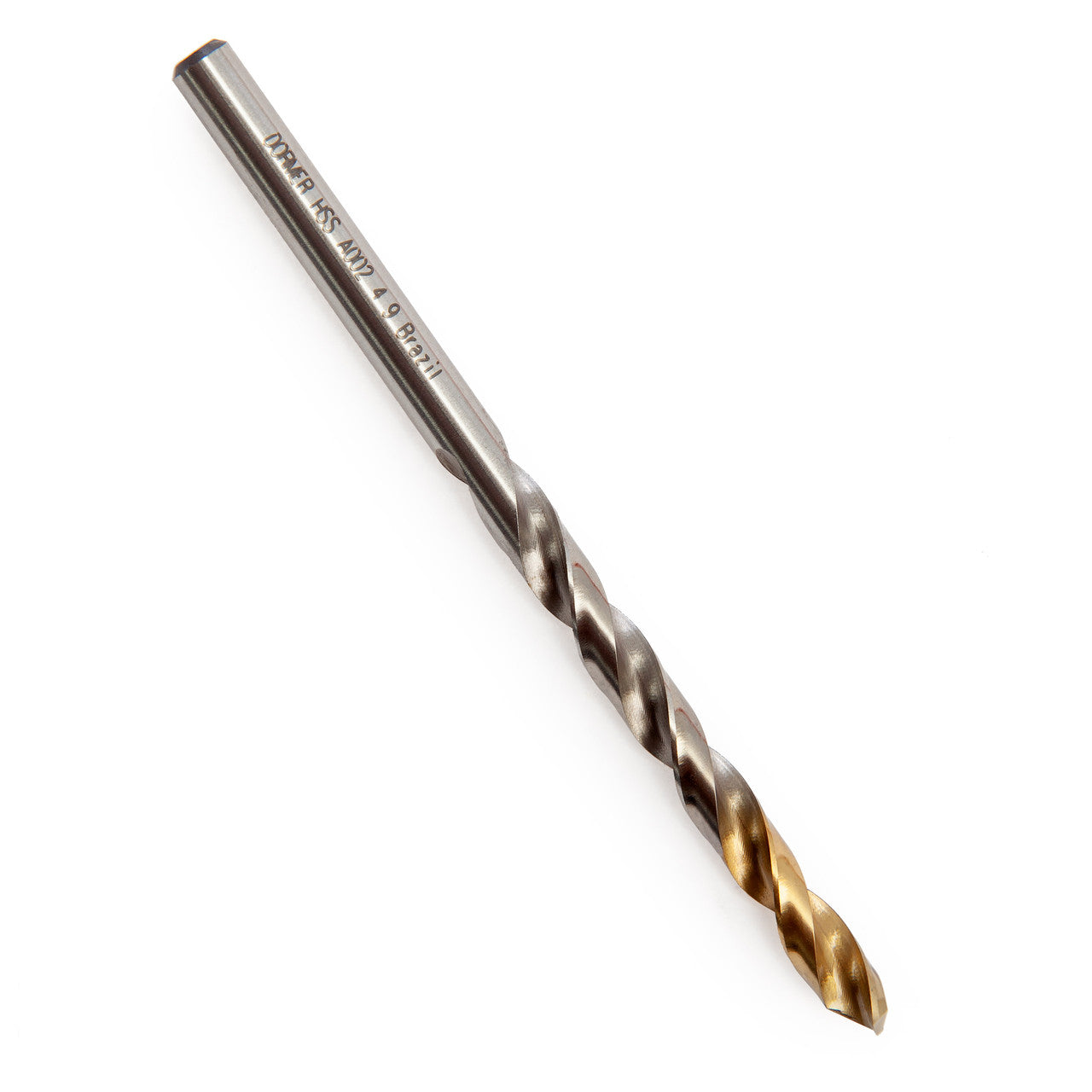 The Dormer A0024.9 A002 is a General Purpose Jobber Drill Bit with a 4.90mm diameter. It comes sold in a box of 10. These drill bits are made from High-Speed Steel with a Titanium Nitride coated tip for longer life when drilling in aluminium, plastic and steel.