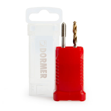 The Dormer L000E500M5NO3XA002 consists of a General Purpose Drill with a 4.2mm diameter and an M5 Tap. The drill is made from High Speed Steel with a Titanium Nitride coated tip for longer life. The 2 piece set features a tap and its corresponding pre-hole drill in one convenient package, helping to save time and error.