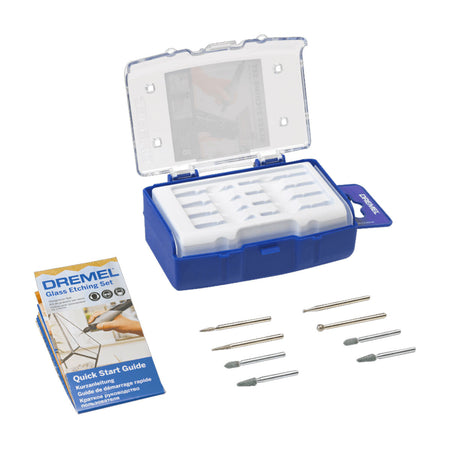 The Dremel 2615C682JA Glass Etching Set contains all the accessories you will need for etching and engraving glass. This set is perfect for the DIY hobbyist or crafter for applications such as personalising wine glasses. Simply hook them up to your Dremel multi-tool and you're good to go.