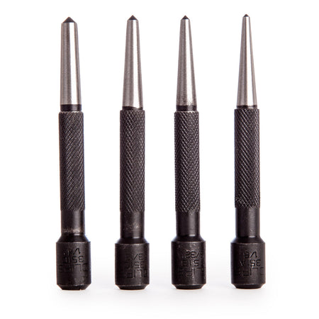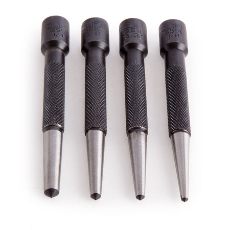 All Eclipse Punches are made from high-quality carbon steel. The point is hardened and tempered to withstand continuous use. All punches have well-cut knurling to provide a positive finger grip. Used to indent, mark, scribe lines and make indentations in workpieces prior to drilling. Punch point accurately ground to an angle of 90°.