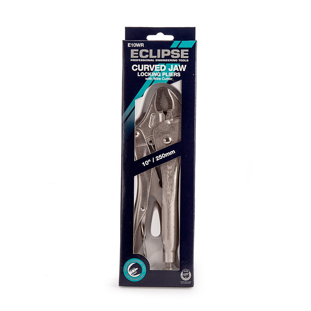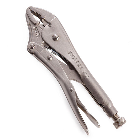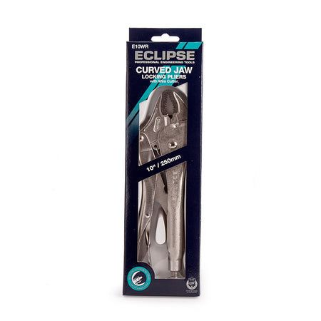 The Eclipse E10WR Curved Jaw Locking Pliers are designed for gripping and clamping round surfaces. Heat-treated, wear-resistant serrated and hardened jaws provide a firm grip from any angle. Screw adjusts to fit the workpiece and exerts a pressure that is maintained even after repetitive use. Body and jaws on all locking pliers made from high-grade chrome molybdenum steel to withstand heavy-duty working conditions, such as welding and hammer strikes. Guarded release trigger protects against accidental release whilst also enabling the tool to be quickly unlocked when required.
