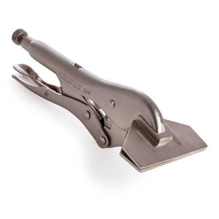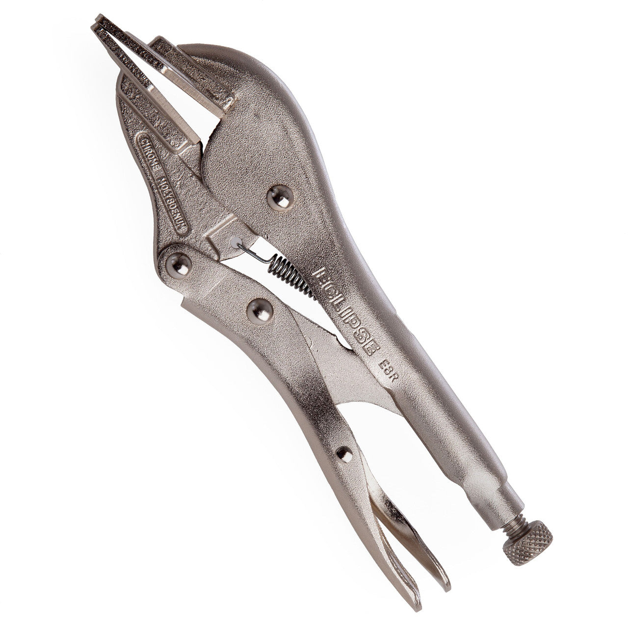 The Eclipse E8R sheet metal tool has wear-resistant hardened jaws that provide a firm grip. The body and jaws are made from high-grade chrome molybdenum steel to withstand heavy-duty working conditions, such as welding and hammer strikes. The guarded release trigger protects against accidental release whilst also enabling the tool to be quickly unlocked when required. They have a screw adjustment to fit the workpiece and exerts a pressure that is maintained even after repetitive use. These pliers are suited to safe handling of metal during bending, forming and crimping of sheet material.
