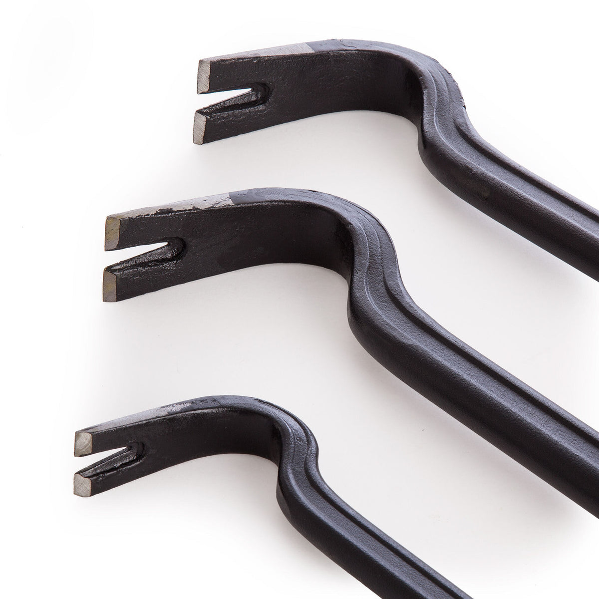 This 3 piece crowbar set is made from heat treated, solid forged steel for maximum strength. The 36 Inch crowbar is for demolishing large timber structures and dismantling concrete and metal constructions. The 24 Inch crowbar size is ideal for demolishing plasterboard, dismantling timber frames and pulling up floorboards. The light duty 14 Inch crowbar is designed to pull large nails and prise or dismantle tough objects.