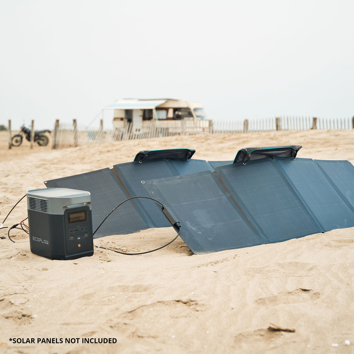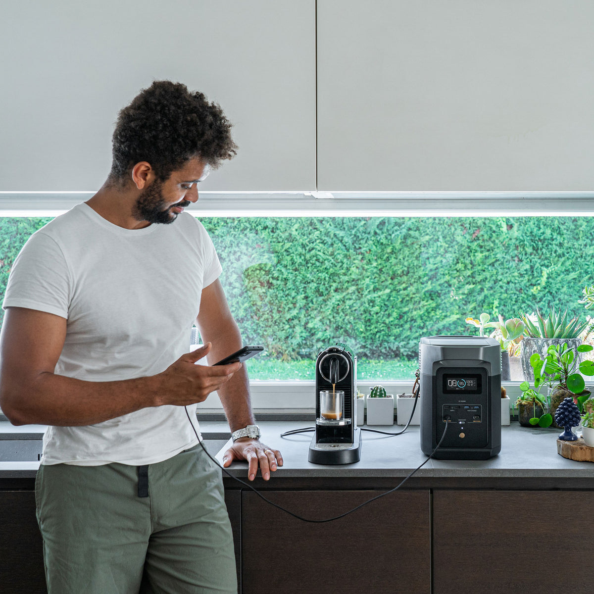 The EcoFlow DELTA 2 is not just a battery. This portable power station powers 90% of home appliances, even high-wattage ones up to 2400W (with X-Boost mode). Use it for powering appliances in the event of home power outages, or for activities like camping, construction, filmmaking and more. Just charge it up, and you have the endless possibility to power any electronic device in situations where mains power is not available. Plug in and power up to 15 devices at once with the AC outlets and USB ports; ideal for all the family. It is one of the fastest-charging portable batteries in the industry, charging from 0-80% in just 50 minutes. Ensure you're prepared with the power station made for almost any situation your family could find themselves in. All while staying green. The ultimate lifesaver in an abundance of situations. Compared to generators, the EcoFlow is portable, indoor friendly and lightweight. Solar panels can be purchased separately, allowing you to recharge the power station in situations like camping and construction where mains power is not available.