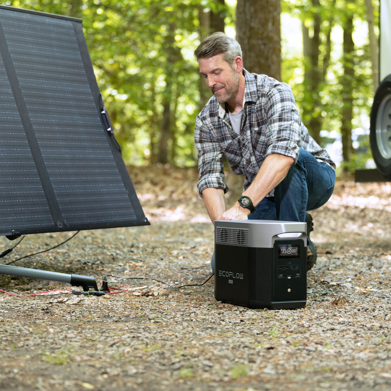 - Connects with up to 2x 400W EcoFlow solar panels to deliver 800W Max solar charging speeds