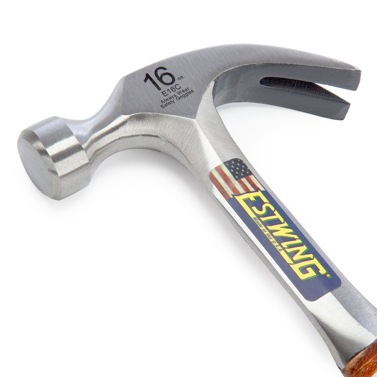 The Estwing E16C is a curved claw solid steel hammer that provides unsurpassed balance and temper. The hammerhead is fully polished and forged in one piece for maximum strength and durability. The leather handle is a work of art. It's the ideal tool for driving and withdrawing common finishing nails.
