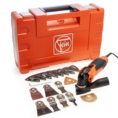 The anti-vibration system reduces vibrations and noise for a safer, more pleasant working environment. The 350W motor has a high copper content, which means that it's more suited to potential overload and delivers a higher cutting speed. The metal gearbox is robust and hardwearing, and the 5m rubber cable allows a large working Radius. This Set arrives with more than 30 accessories. Thanks to FEIN's unique rapid clamping system, these attachments can be swapped out in less than three seconds without the need for tools. Ideal for trade professionals and DIY enthusiasts.