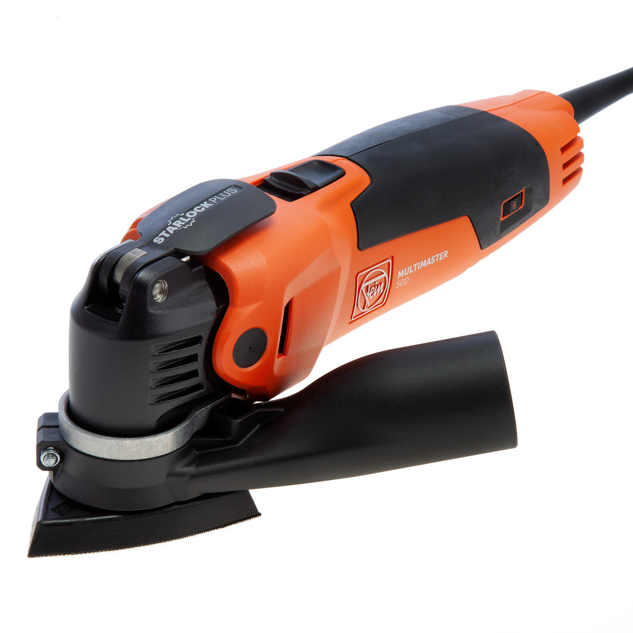 The Fein Multimaster 500 Plus Top 110V Oscillating Multi Tool can be used for removing tiles, sanding, sawing wood and metal, and a variety of other applications