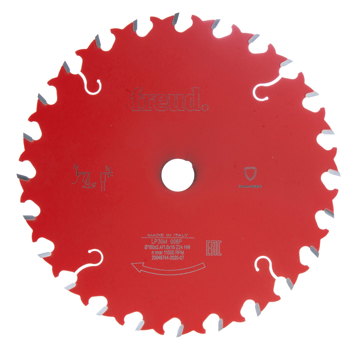 The Freud LP30M 006P has a 160mm diameter with 24 teeth and a 16mm bore, recommended for Portable Machines. This is an average number of teeth and is particularly designed for both long grain and cross-grain cutting solid wood. These blades give a good finish if used in this way.