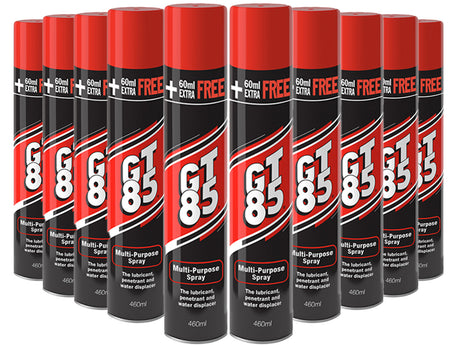 Achieve long-lasting lubrication with GT85 Original Multi-Purpose Lubricant ideal for use on bike chains, cables, levers, gears and more. It is recommended and used by elite cyclists. Its formula is non-sticky and contains a long-lasting, protective coat. A light overall spray will seal out dirt and dust and moisture. A case of 12 cans with 460ml of GT85.