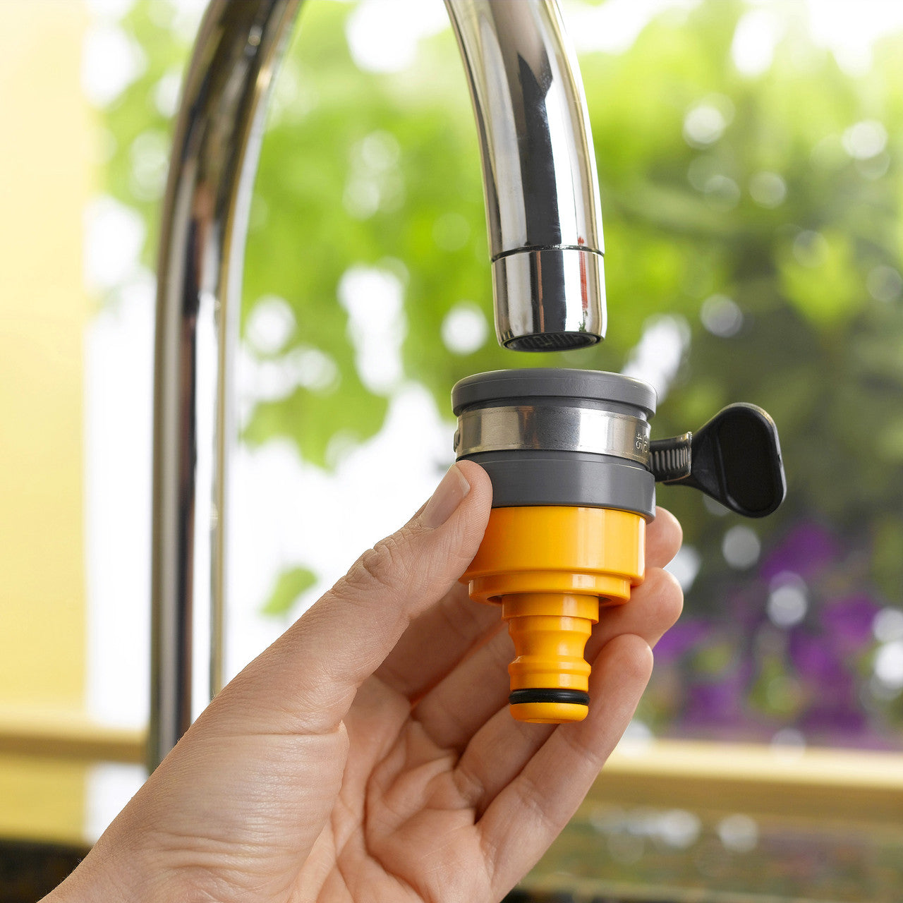 The Hozelock 2177 Round Mixer Tap Connector has a rubber seal that securely fits around round and oval taps. Tighten the Connector by turning the stainless steel clip to achieve a leak-free seal.