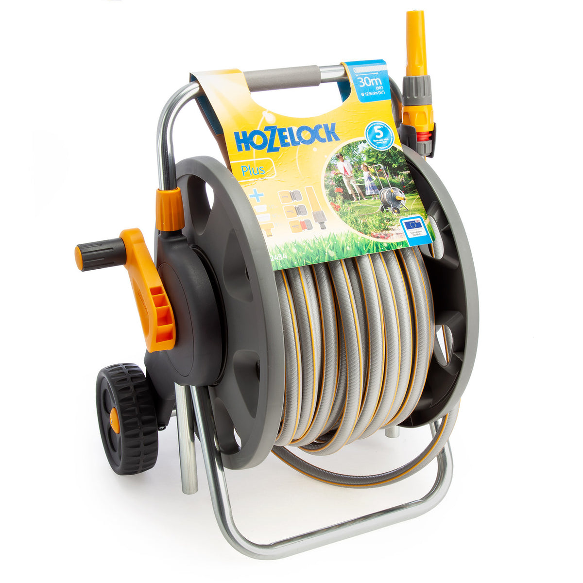 The Hozelock 2434 Assembled Hose Cart has 30 Metres of 12.5mm diameter hose and all the fittings you need to start watering. Freestanding with a telescopic towing handle for easy movement around the garden. The Cart has a capacity for 60 Metres of hose and a one-piece winding handle with a sturdy frame, allowing for quick and easy rewinding.