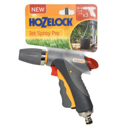 The Hozelock 2692 Jet Spray Pro is the ultimate outdoor cleaning water spray gun. It is among the most durable and robust watering accessories in the world. With a die cast metal body for ultimate strength and durability and a lockable trigger and separate flow control. It has 3 spray patterns and a universal male hose end connector which is compatible with all Hozelock fittings.