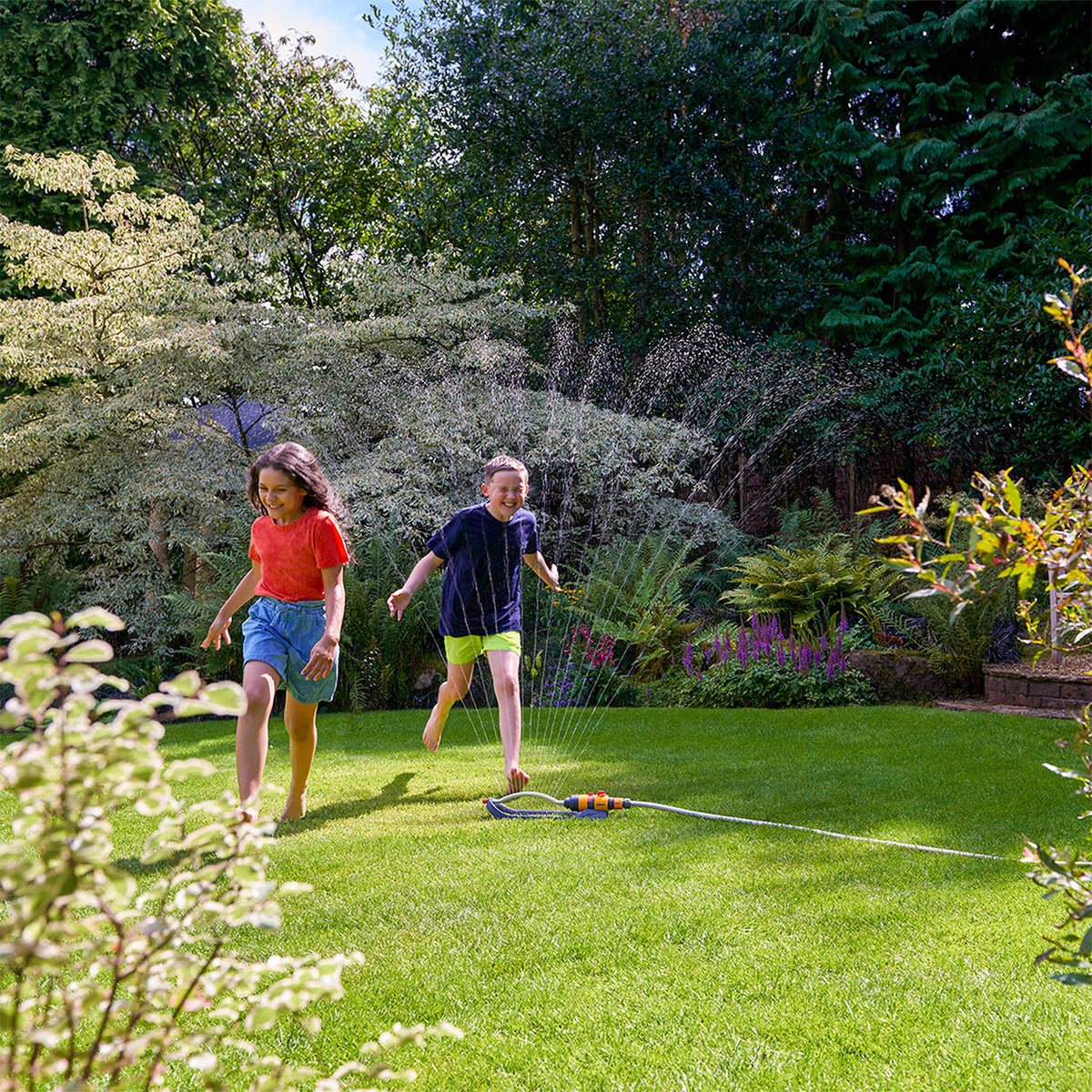 The Rectangular Sprinkler Plus 220 M from Hozelock is a powerful water-driven oscillating sprinkler with flow control. Allowing users to adjust and stop water at the sprinkler; providing even coverage for all gardens.